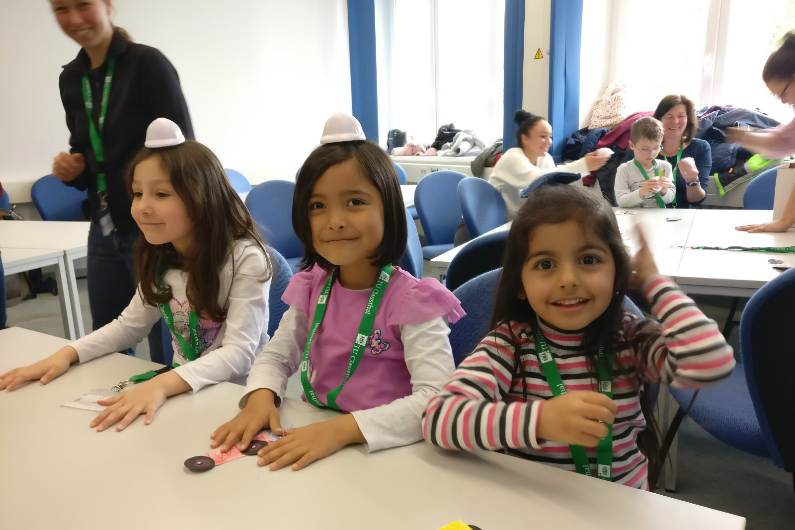 Angela Binder, wissenschaftliche Mitarbeiterin am Bergbau-Institut, führte die Gruppe spielerisch an das Thema Wissen heran. Sie begann mit der Erklärung, wie das Salz auf die Bretzel kommt. Danach bastelten und bemalten die Mädchen und Jungen einen Fahrlader, wie er im Untertagebergbau eingesetzt wird. Es folgte ein kleines Quiz. Dabei konnten die Kinder verschiedene Gesteine anfassen und sollten dann erraten, was aus diesen Steinen hergestellt werden kann. Zum Abschluss gab es Mittagessen in der Mensa. Sascha Kortegast, der stellvertretende Mensaleiter, begrüßte die kleinen Gäste inmitten von Studierenden und verteilte Schokolade.