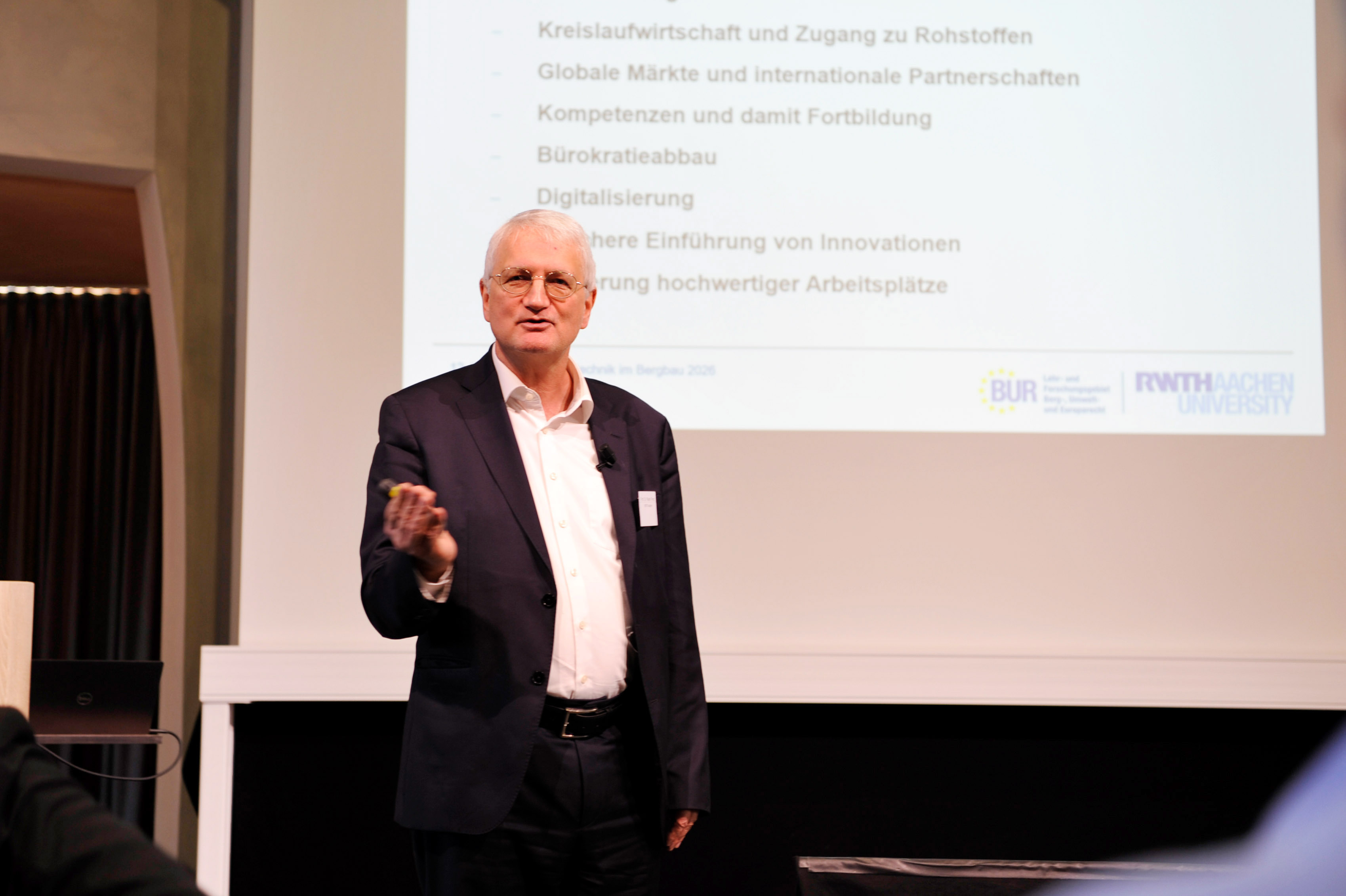Die fachliche Seite stand dann ab der zweiten Keynote wieder im Mittelpunkt, die den im Vorjahr verkündeten Clean Industrial Deal adressierte. „Die EU-Ebene setzt damit – neben dem Klimaschutz – auf eine bessere Entwicklung der Wettbewerbsfähigkeit und der klassischen Industrien“, erläuterte Prof. Walter Frenz (RWTH Aachen). Beim vorausgegangenen Green Deal der EU habe noch der Klimaschutz dominiert. Bei der Verwirklichung des nun aktuellen Clean Industrial Deal, so Frenz, kommen der Kreislaufwirtschaft und der Gewinnung von Rohstoffen, also zentralen Forschungsthemen der TU Clausthal, eine wesentliche Bedeutung zu. Gerade die Kreislaufwirtschaft (Circular Economy) sei ein Motor für Innovationen.