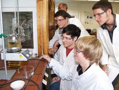 „In der Schule machen wir meist nur Theorie, hier ist Praxis angesagt“, sagt die 19-jährige Irina Reisler und hantiert mit Becherglas und Magnetrührer. „In diesen Räumen herrscht eine Atmosphäre zum Forschen“, meint Jonas Wylegala (18) respektvoll. Und Edgar Holzer (18) erläutert: „In einem Uni-Labor ist viel mehr möglich als in der Schule, allein schon wegen der höheren Sicherheitsstandards, hier können wir experimentieren und jede Menge ausprobieren.“