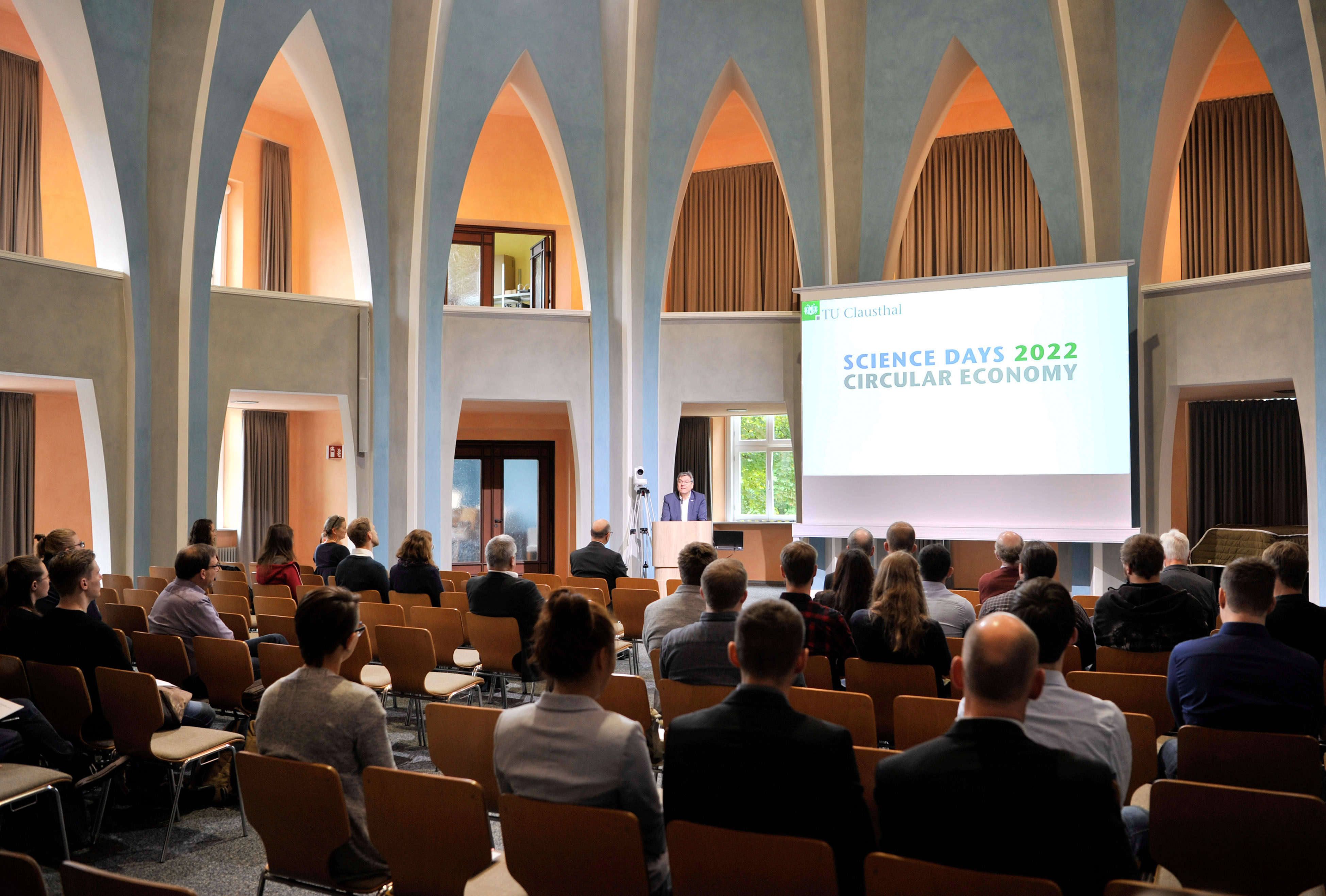 Insgesamt 200 Clausthaler Wissenschaftlerinnen und Wissenschaftler haben sich für die vier TU-internen Science Days angemeldet – von Promovierenden über Postdocs und Abteilungsleitenden bis zu Professorinnen und Professoren. Den Tagungsauftakt machte am 14. September in der Aula Academica das Forschungsfeld „Neuartige Materialien und Prozesse für wettbewerbsfähige Produkte“.