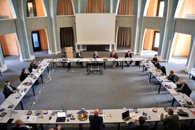 Nach dem architektonischen Exkurs widmeten sich die LHK-Mitglieder wieder Hochschulthemen. Die niedersächsische Landeshochschulkonferenz ist ein Zusammenschluss von 21 Hochschulen des Bundeslandes. Vertreten werden die Wissenschaftseinrichtungen durch ihre Präsidentinnen und Präsidenten, die sich mit übergreifenden Angelegenheiten der Hochschulen befassen und gemeinsame Anliegen zur Geltung bringen. Die LHK nimmt die Interessen der Mitgliedshochschulen in Bezug auf Lehre, Studium und Forschung in der Hochschulpolitik sowie in der Öffentlichkeit wahr und vertritt die Positionen gegenüber Land und Bund.