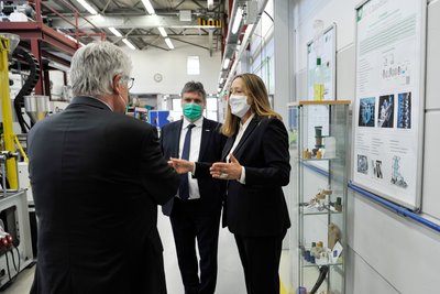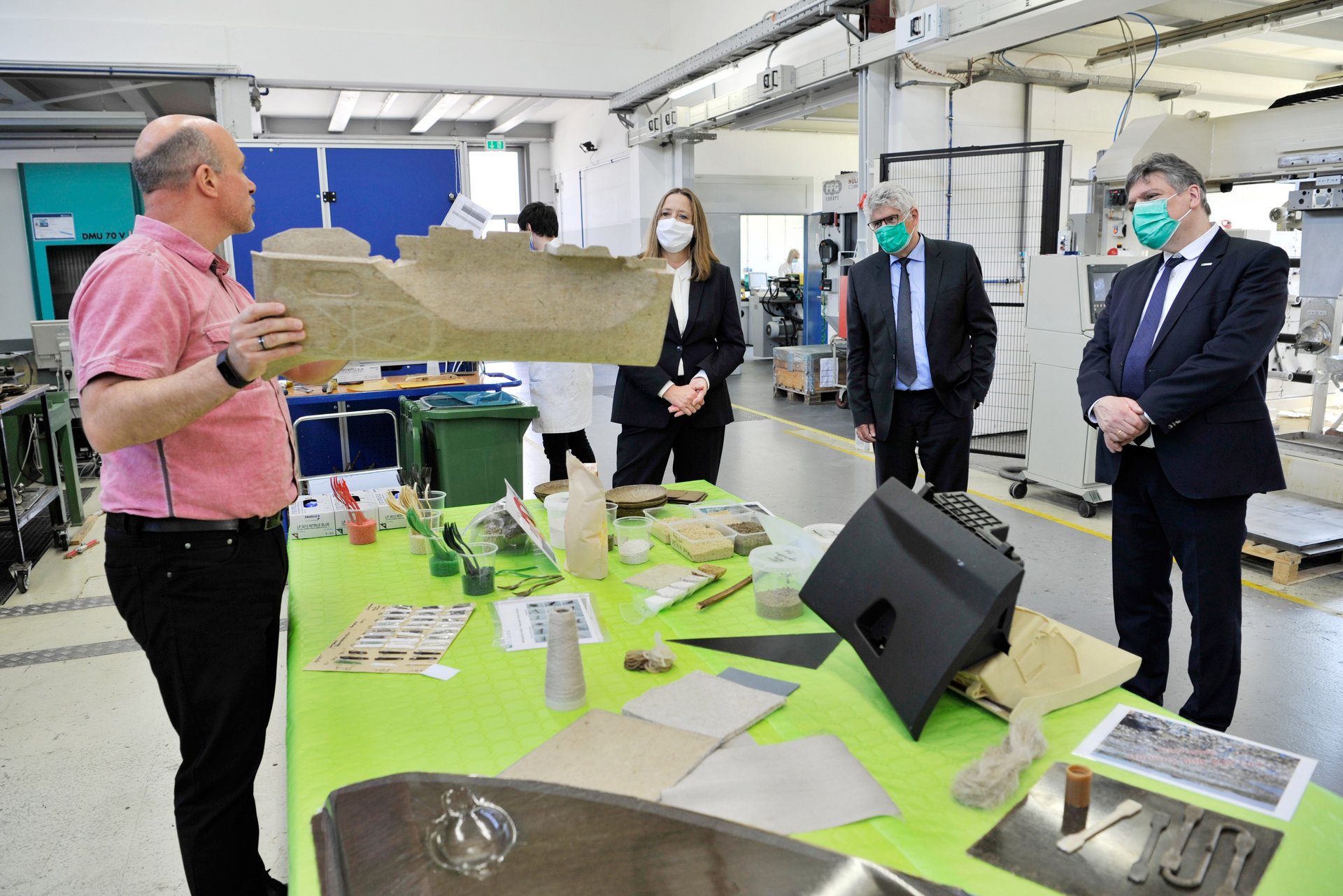Gabriele Andretta informiert sich über das digitale Semester, Digitalisierung für eine nachhaltige Kreislaufwirtschaft, innovative Materialien und das neue wissenschaftliche Profil der TU.