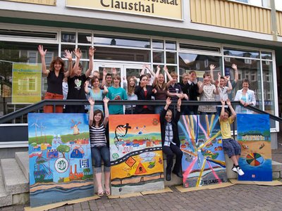 Die beiden anderen 8. Klassen haben sich mit den Themen „Energie-Uni“ und „Wissenschaft“ kreativ auseinander gesetzt. Erneuerbare Energien sind dabei ebenso in Acryl verewigt worden wie Albert Einsteins Relativitätstheorie und die Messstation auf dem Brocken. Das vierte Exponat schließlich zeigt die Aula. Sie soll Symbol dafür sein, dass eine TU auch allerlei repräsentative Aufgaben besitzt.
