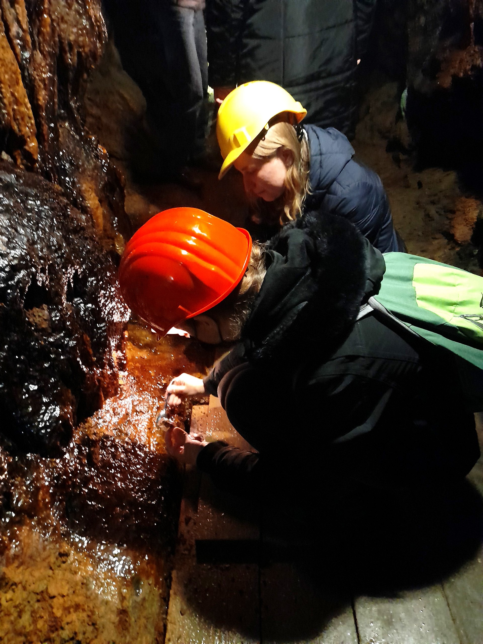 Zusammen mit den Technikantinnen der TU Braunschweig besuchte die Clausthaler Gruppe die Weltkulturerbestätte. Bei einer Führung durch den Roeder-Stollen staunten sie über die Innovationskraft der Harzer Bergleute. Im anschließenden Workshop experimentierten sie zum Thema Rohstoffverknappung und Recycling. Besonders gut kam das Funkenschlagen aus dem Erzbrocken an: „Hier kann man sich richtig verausgaben“, freuten sich die Teilnehmerinnen. Zu Beginn des Workshops durften sie selbst zum Recycling beitragen und alte Elektrogeräte im Shredder „Shreddi“ des IFAD zerkleinern.