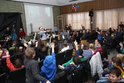 Professor Schade hält seit Jahren immer kurz vor Weihnachten eine etwas andere Vorlesung am Institut für Energieforschung und Physikalische Technologien (IEPT) der TU in Clausthal-Zellerfeld. Mal bringt Dr. Stefan Kontermann eine Essiggurke zum Glühen, mal lässt Dr. Ulrike Willer ein Ei in einer Glasflasche mit eigentlich viel zu kleiner Öffnung verschwinden und manchmal spielt Dr. Klaus Faulian mit einem Bunsenbrenner auf Glasrohren eine Melodie. Diesmal zeigten sie ihre Versuche erstmalig auch in einer einstündigen Vorlesung auf dem Goslarer „EnergieCampus“ der TU. Die Schulen aus der Umgebung wurden direkt angeschrieben und eingeladen. Gebannt verfolgten die rund 200 Schüler und Lehrer den Experimenten und klatschten reichlich Beifall.