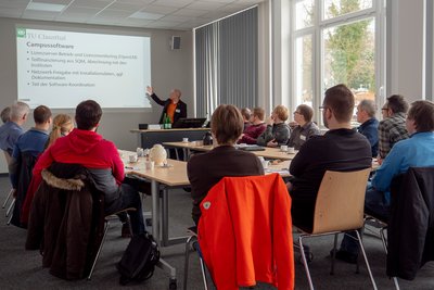 Martin Diedrich, Leiter des IT-Service im Rechenzentrum, stellte die Programme vor und informierte auch über Finanzierung und Strukturierung der Software. Dabei regten die Teilnehmenden an, die Software-Produkte nach ihrem Anwendungsgebiet zu kategorisieren und zu unterteilen. Das Rechenzentrum wird den weiteren Dialog fördern und mit Hilfe einer Umfrage diese Unterteilung festlegen.