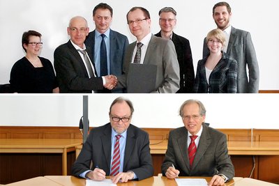 Die Clausthaler Hochschulleitung steht hinter dem Projekt. Den Vertrag zwischen der TU und dem lokalen Partner unterzeichneten Universitätspräsident Professor Thomas Hanschke und FWT-Schulleiter Reinhard von Liebenstein. Die Vereinbarung mit der Technikerschule aus Süddeutschland besiegelten Professor Gunther Brenner, TU-Vizepräsident für Studium und Lehre, sowie TA-Schulleiter Werner Schalk. Damit sich der Gast aus Augsburg ein Bild von der TU Clausthal machen konnte, war die Vertragsunterschrift in ein Rahmenprogramm mit Besichtigung des Campus' sowie einiger maschinenbaulicher Institute eingebunden.