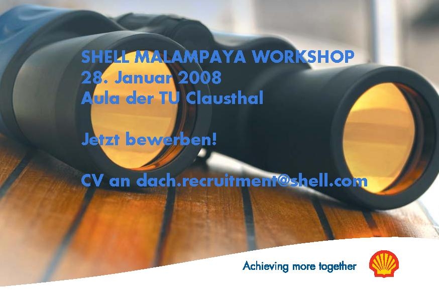Clausthal-Zellerfeld. Das Unternehmen Shell veranstaltet an der TU Clausthal den sogenannten Malampaya-Workshop. Termin ist der 28. Januar von 9 bis 16 Uhr im Seminarraum der Aula. Der Workshop ist eine Art Planspiel oder Fallstudie für Studierende.