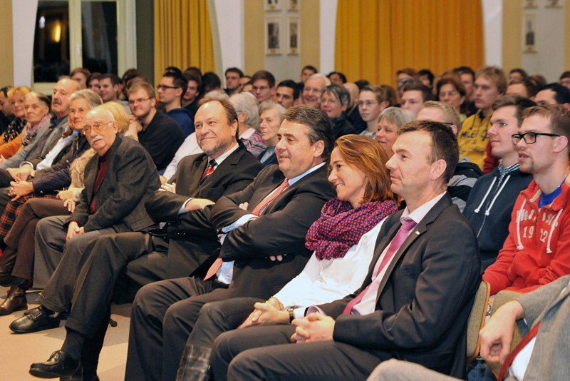 Sigmar Gabriel war auf Einladung des Evangelischen Studentenzentrums Clausthal in den Oberharz gekommen und sprach innerhalb der Vortragsreihe „Wissenschaft - Ethik - Technik“ vor Studierenden, Uni-Beschäftigten und Interessierten. Zuvor war der gebürtige Goslarer, der in diesen Wochen als Parteichef der Sozialdemokraten in Berlin Koalitionsverhandlungen führt, von Professor Thomas Hanschke begrüßt worden. Der Universitätspräsident spielte unterhaltsam auf das in der Vergangenheit nicht immer reibungsfreie Verhältnis der Städte Clausthal-Zellerfeld und Goslar an, betonte aber zugleich: „Der Schritt vom Berg in die Region mit dem Aufbau eines Energie-Forschungszentrums in Goslar hat sich für die TU Clausthal als richtig erwiesen und den Blick geweitet.“