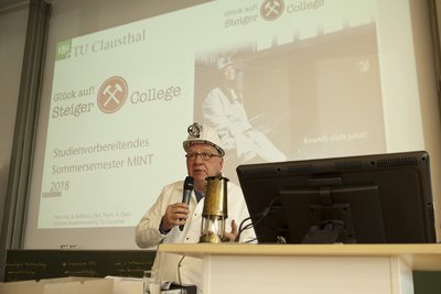 Dass dafür an der TU Clausthal, die aus einer angesehenen Bergakademie hervorgegangen ist, der Name Steiger-College gewählt wird, ist naheliegend. Ganz in Bergmannskluft gehüllt, erläuterte Professor Oliver Langefeld vom Institut für Bergbau: „Der Steiger ist eine verantwortungsvolle Aufsichtsperson im Bergbau. Seine Aufgabe ist es, für Sicherheit unter Tage zu sorgen.“ Durch den Mentoring-Ansatz werden die Studierenden im Steiger-College dabei unterstützt, sicherer und eigenverantwortlich durchs Studium zu kommen.
