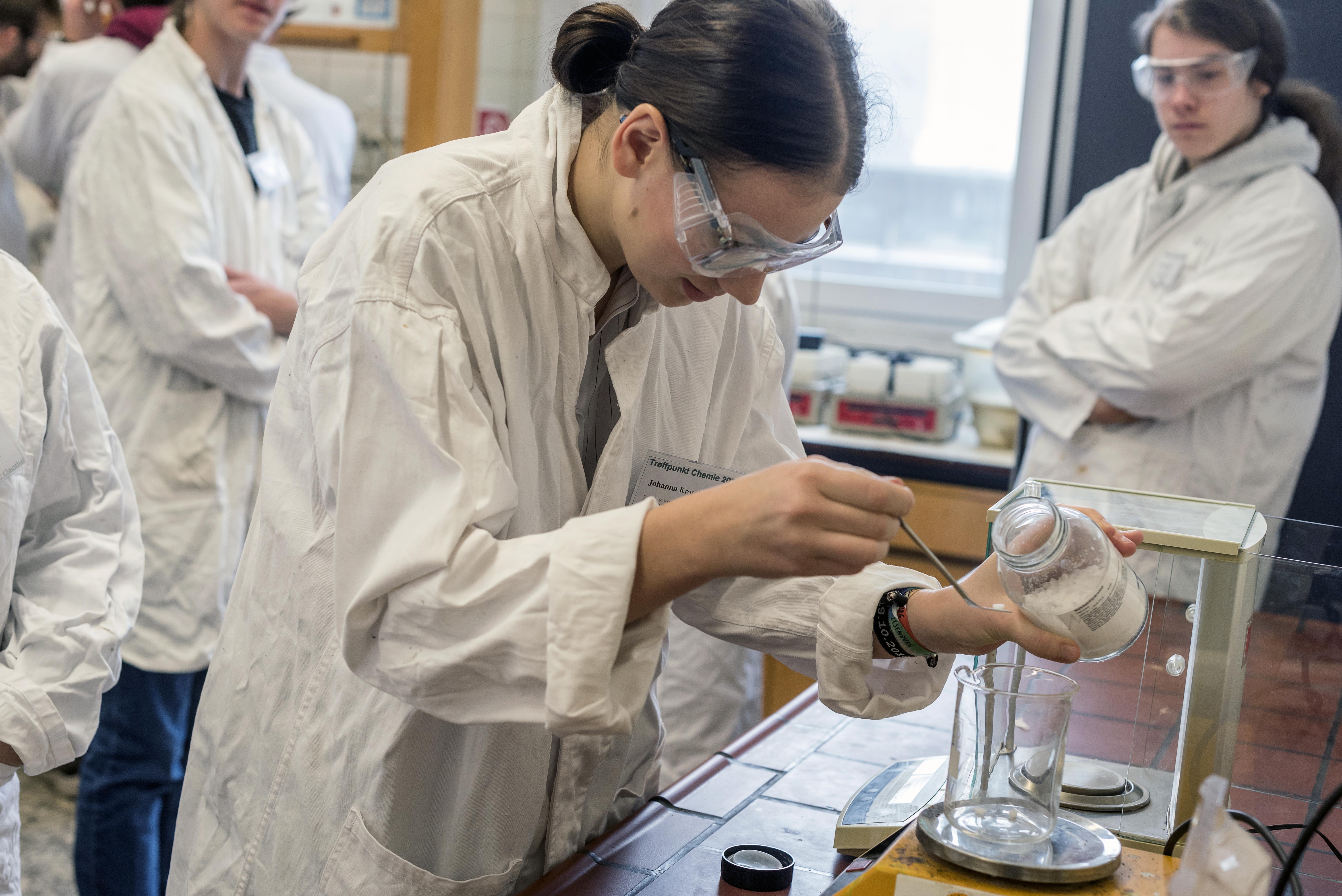 Studiendekan Professor Andreas Schmidt begrüßte die Schülerinnen und Schüler und stellte ihnen die Studiengänge und Forschungsgebiete der TU vor. Durch Laborpraktika erhielten die Jugendlichen dann tiefere Einblicke in die Aufgabengebiete der fünf Fachbereiche: Am Institut für Organische Chemie konnte mit nachtleuchtenden Substanzen experimentiert und wohlriechende Duftorgeln aus Fruchtaromen hergestellt werden. Wie Schwermetalle und seltene Erden charakterisiert werden und die Atomabsorptionsspektrometrie funktioniert, lernten die Schülerinnen und Schüler am Institut für Analytische und Anorganische Chemie. An den Instituten für Physikalische und Technische Chemie konnten sie Treibhausgase charakterisieren oder erfahren, wie die Polymersynthese abläuft.