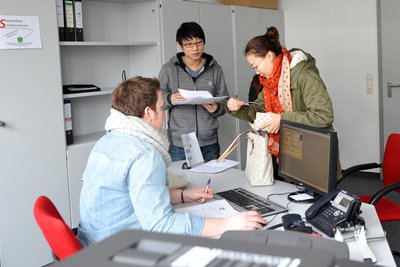 Von Montag bis Donnerstag, jeweils von 10.30 bis 13.30 Uhr, erstellen eingearbeitete studentische Hilfskräfte beispielsweise Bescheinigungen, informieren über aktuelle studentische Themen und antworten, soweit es geht, auf die Fragen der Kommilitonen. „Tiefergehende Fragen und rechtliche Auskünfte werden nach wie vor vom Stammpersonal beantwortet“, informiert Dirk Kleinewig aus dem Studienzentrum. Das neue Angebot, das ließe sich schon nach wenigen Tagen sagen, werde sehr gern angenommen. Zumal sich für die Studierenden durch den „ServicePoint“ die Wartezeiten spürbar verringern.