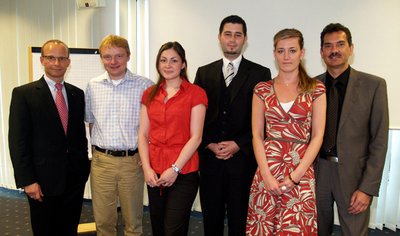 „Wir haben in den vergangenen drei Monaten sehr viel Zeit in unseren Businessplan gesteckt, er umfasst rund 80 Seiten“, sagte Marcel Boukoura. Das Siegerteam hatte für die aquen aqua-engineering GmbH mit Sitz in Langelsheim eine strukturierte Marktanalyse erstellt. Das junge Unternehmen, das von Dr. Christian Schröder geführt wird, baut Anlagen für die Behandlung von Klärschlamm. Darüber hinaus entwickelten die Studierenden zum Beispiel Businesskonzepte für ein mögliches Kino in Clausthal, ein sogenanntes virtuelles Kraftwerk oder die Koppe-Apparatebau GmbH. Die Studierenden, die sich mit Apparatebau beschäftigt hatten - Cathrin Eickhorst, Markus Hurnaus, Manuela Mayer, Juliane Schulz und Erkut Sarigül -, waren für ihr Konzept von der Jury mit Platz zwei und 400 Euro bedacht worden.