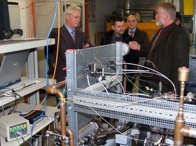 In drei Instituten betrachtete die Abordnung aus der Landeshauptstadt anschließend die Aktivitäten der Südniedersachsen auf dem Gebiet der Energieforschung. Dr. Ernst-August Wehrmann vom Institut für Elektrische Energietechnik erläuterte den Gästen den Energiepark Clausthal, eine Lehr- und Demonstrationsanlage für dezentrale regenerative Versorgungssysteme. Im Institut für Erdöl- und Erdgastechnik wurden etwa die Forschungsthemen Lagerstättenmodellierung, Tiefbohr- und Produktionstechniken sowie Kohlendioxid-Speicherung vorgestellt. Ein Schwerpunkt am Institut für Aufbereitung, Deponietechnik und Geomechanik bildete der Bereich Salzkavernen (unterirdische Speicherstätte für Gase oder Flüssigkeiten).