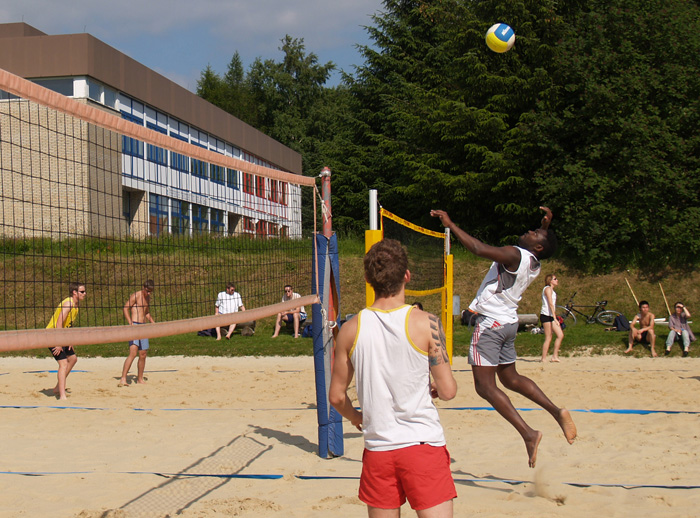 Bei herrlichem Wetter hatte Verwaltungschefin Dr. Ines Schwarz das Staffelrennen als Abschluss des Sommersportfestes gestartet. Bereits in den Stunden zuvor hatten die Clausthaler Studierenden unter Beweis gestellt, dass sie nicht nur Köpfchen, sondern auch Muskeln haben. Neben Mitmach-Aktionen wie Fechten, Frisbee oder Basketball wurden die Hochschulmeister im Fußball und Beachvolleyball ermittelt. Als beste kickende Kleinfeldmannschaft der Uni erwies sich Maghreb United. Die nordafrikanischen Studenten kamen im Finale zu einem souveränen 4:0-Erfolg gegen „Rinderwahnsinn“. Im Beachvolleyball schmetterten sich Sven Wittenbröker und Philipp Müller zum Sieg vor Brini Slim und Mathias Klein.