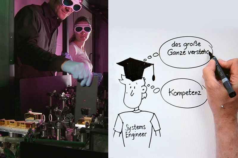Eine ganz andere Zielgruppe spricht der Weiterbildungsstudiengang „Systems Engineering“ an, nämlich Akademiker mit Berufserfahrung. Für diesen Werbespot, initiiert vom Institut für Informatik und koordiniert von Diplom-Mathematikerin Ingrid Schindler, hat der Grafiker Lothar Bauer (in Zusammenarbeit mit der LOVT-Filmproduktion) den Zeichenstift geschwungen. Im berufsbegleitenden Studiengang „Systems Engineering“ werden Inhalte aus Maschinenbau, Elektrotechnik und Informatik in übergreifenden Fähigkeiten des Systementwurfs und Projektmanagements vereint. Ausgestrahlt wird der Spot im September einerseits in südniedersächsischen Kinos, andererseits deutschlandweit in großen Industriestädten wie etwa Hannover, Hamburg oder Rostock. Begleitend werden die Berufstätigen anhand einer Plakatkampagne animiert, sich an der TU interdisziplinär weiterzubilden. Ziel ist es, die künftigen Karrierechancen zu verbessern, sich neue Möglichkeiten auf dem Arbeitsmarkt zu erschließen oder einfach wieder spannende Dinge zu entwickeln.