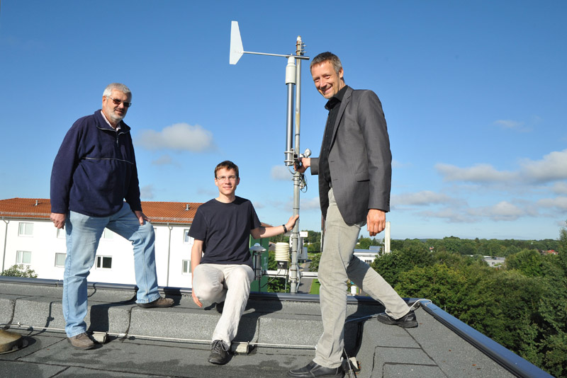 Der Student, der sich mit dem Wetterbericht beschäftigt, heißt Lasse Fröhner. Er studiert gleich zwei Bachelorfächer: Maschinenbau und Technische Informatik. „Das theoretische Wissen aus meinem Studium kann ich hier praktisch anwenden“, berichtet Fröhner über die Arbeit an der Wetterstation. So gelte es, Größen, die elektrisch erfasst werden, anschließend signaltechnisch für die Darstellung im Internet aufzubereiten. Neben der Temperatur erhebt die Wetterstation exakte Werte zu Niederschlag, Luftdruck, relativer Luftfeuchtigkeit, Windrichtung und -geschwindigkeit sowie Strahlung. Ein Standbild der Leibnizstraße, das einmal pro Minute aktualisiert wird, liefert zudem einen Gesamteindruck vom Wetter.
