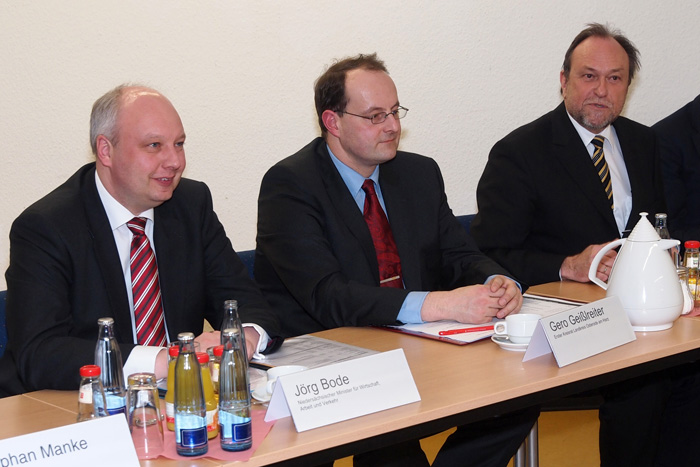 „An der TU Clausthal sind durch die IZH zahlreiche Strategie- und Strukturdiskussionen intensiviert und weiterentwickelt worden“, erläuterte TU-Präsident Hanschke die Einbindung der Hochschule in das Regionalentwicklungsprojekt. Beispielsweise habe man die Idee eines Forschungscampus Recycling ausgearbeitet sowie die Überlegung, Kompetenzzentren einzurichten für Rohstoffsicherung und für Umweltfolgen oder ein Graduiertenkolleg für komplexe Systeme und Simulation. Die TU Clausthal habe mit Unterstützung der IZH außerdem ein Wachstumskonzept auf den Weg gebracht und ein professionelles Alumni-Management gestartet. Gemeinsam sei ein neuartiges Studierendenbindungsprogramm für Unternehmen aus der Region entwickelt worden, für das bereits erste Unternehmen für Stipendien gewonnen worden seien. „Derzeit entwickeln wir auch noch ein Konzept für die Einrichtung einer Akademie für technische Führungskräfte“, kündigte Professor Hanschke an. Auch der Landkreis Osterode profitiert von der Harzer Universität, sagte der Erste Kreisrat Geißlreiter. So wurde die Technologieberatung der TU Clausthal auf den Kreis Osterode ausgeweitet.