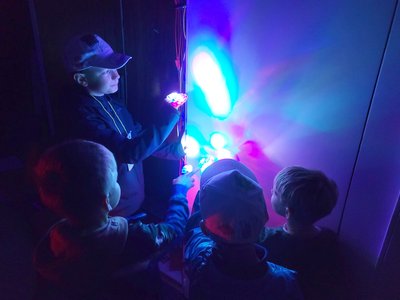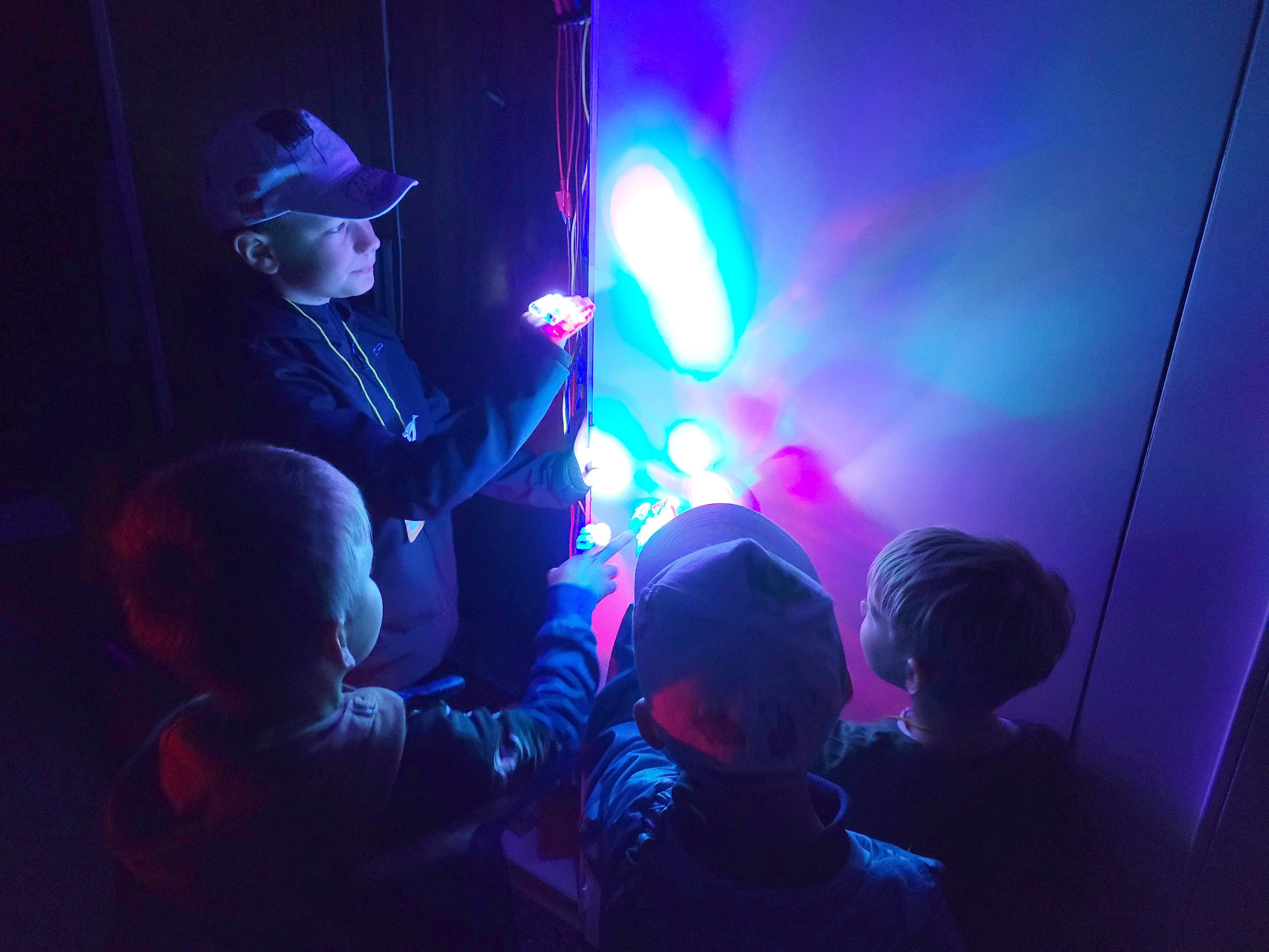 Das Programm der Ferienbetreuung bot neben sportlicher Betätigung beim Kinder-Yoga und Ausflügen zum Weltkulturerbe Rammelsberg und auf die Feuerwache Clausthal-Zellerfeld auch viel Gelegenheit zum Experimentieren. Am Institut für Energieforschung und Physikalische Technologien begeisterten sich die jungen Entdecker schnell für die verschiedenen Farben des Lichts. In Optik-Versuchen mit Privatdozentin Ulrike Willer beobachteten sie unter anderem, wie sich Licht ausbreitet und dass eine Mischung aus rotem, grünem und blauem Licht Weiß ergibt – die sogenannte additive Farbmischung.