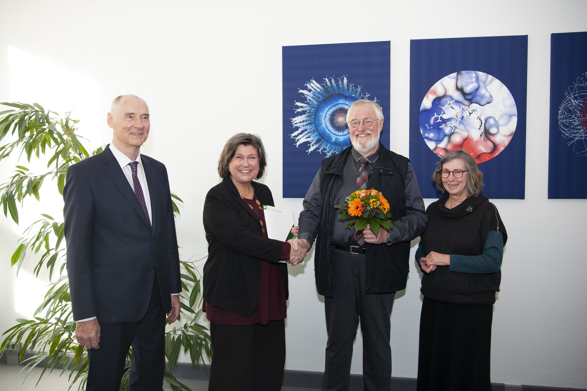 Professor Dieter E. Kaufmann (links) erhält von Universitätspräsident Professor Joachim Schachtner die Dankesurkunde. Auch Professor Karl-Heinz Lux (unten) ist vom Universitätspräsidenten verabschiedet worden. Bei Ernst-August Wehrmann nahm Vizepräsidentin Irene Strebl die Verabschiedung vor. Fotos: Melanie Bruchmann