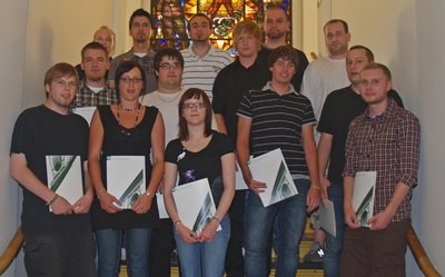 Der „Renner“ unter den Ausbildungsberufen ist der Fachinformatiker gewesen. Allein zwölf der 18 verabschiedeten Azubis haben eine Lehre zum Fachinformatiker für Systemintegration oder für Anwendungsentwicklung absolviert. Darüber hinaus waren ein Physiklaborant, eine Mediengestalterin, eine Fachangestellte für Medien- und Informationsdienste, ein Feinwerkmechaniker, ein Elektroniker und ein Werkstoffprüfer dabei. Fünf der Azubis hatten ihre Ausbildungszeit verkürzt.